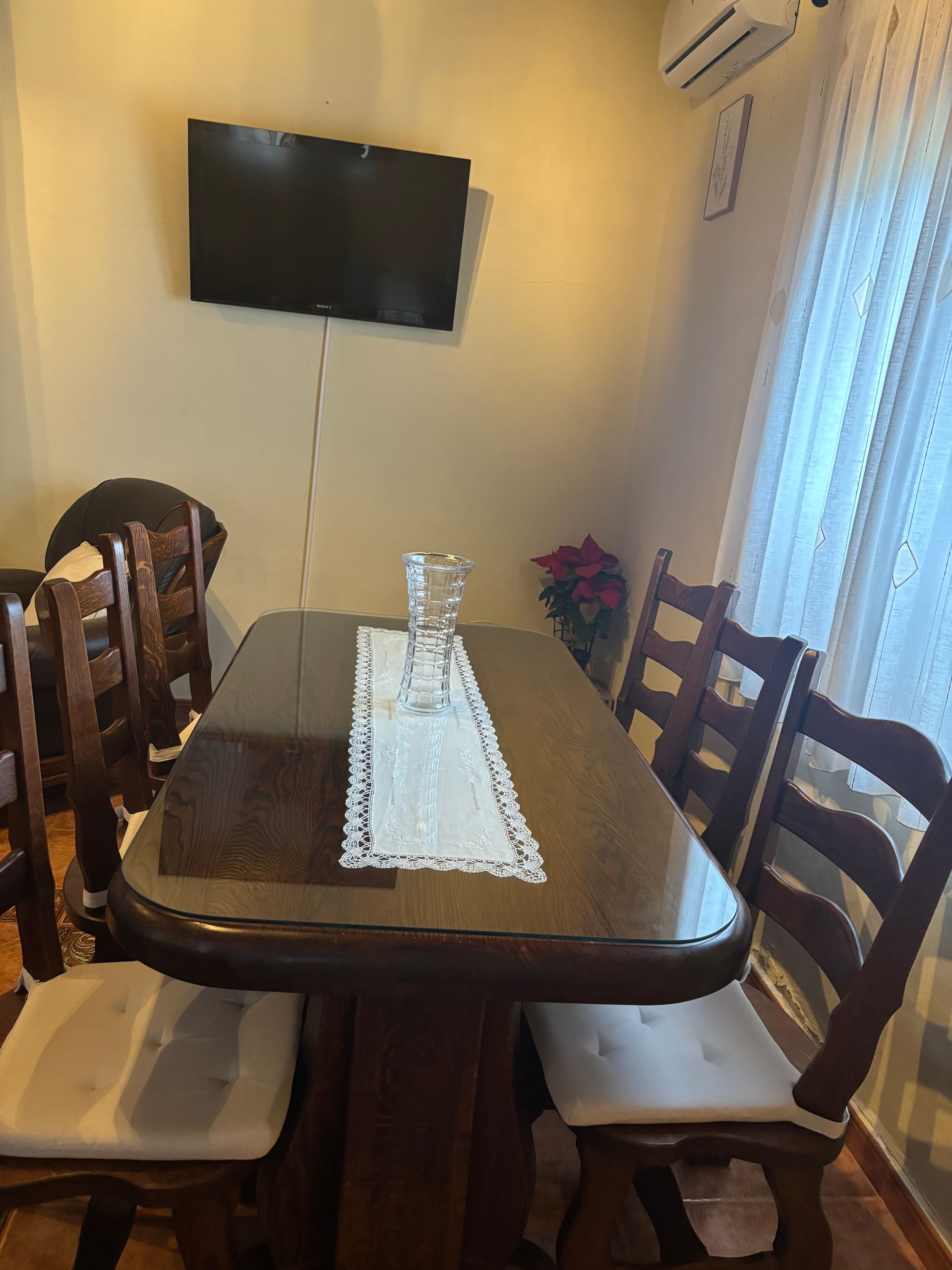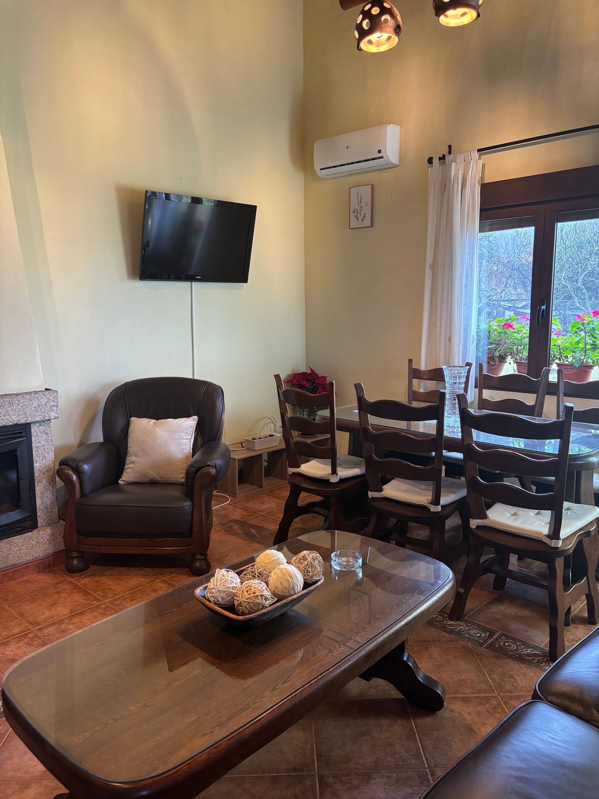 La casa dispone de aire acondicionado, chimenea, terraza y un agradable jardín con piscina de temporada, además de parking privado gratuito. Rodeada de bonitas vistas a la montaña y al entorno natural, es el lugar perfecto para desconectar y disfrutar de unos días en familia o con amigos.